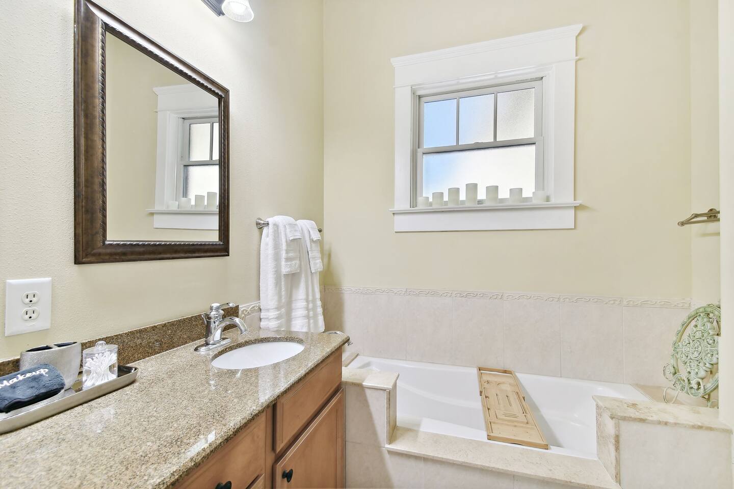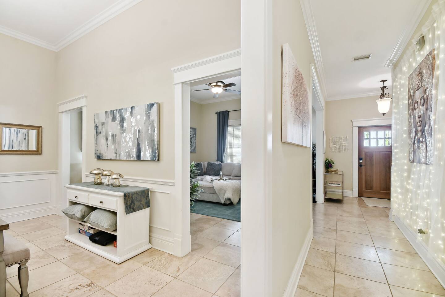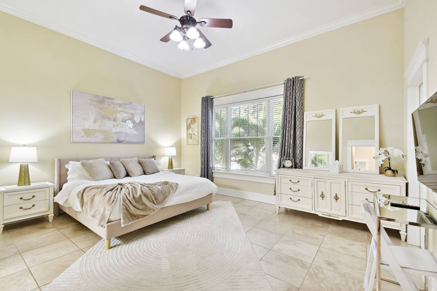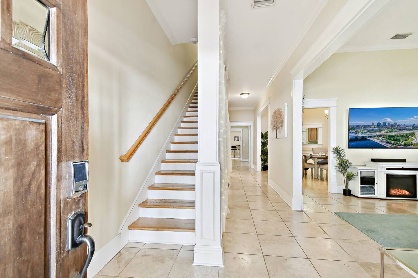 ⭑ Master Bedroom: ⭑ ✔ King-sized bed with plush linens and extra pillows ✔ Walk-in closet and dresser for ample storage ✔ 50" Smart TV for streaming and entertainment ✔ Room-darkening shades for restful sleep ⭑ Second Bedroom: ⭑ ✔ Queen-sized bed with luxurious cotton linens ✔ Spacious closet and dresser ✔ 50" Smart TV and dedicated workspace ✔ Room-darkening shades ⭑ Third Bedroom: ⭑ ✔ Queen-sized bed with fresh linens ✔ Closet space and a dresser for convenience ✔ 50" Smart TV for relaxation and streaming ⭑ Living Room: ⭑ ✔ Oversized sofa perfect for group lounging ✔ 75" Smart TV with high-speed WiFi ✔ Sound system for immersive audio ✔ Cozy indoor fireplace for the perfect ambiance ✔ Board games and books for extra entertainment ⭑ Kitchen and Dining Area: ⭑ ✔ Fully equipped kitchen with modern appliances ✔ Refrigerator, stove, oven, microwave, and dishwasher ✔ French press, Keurig coffee machine, and hot water kettle ✔ Complete cookware set, including pots, pans, baking sheets, and more ✔ Wine glasses, toaster, blender, and rice maker ✔ BBQ utensils and grill tools for outdoor cooking ✔ Spacious dining table perfect for family meals ⭑ Bathrooms: ⭑ ✔ 2.5 bathrooms with modern fixtures ✔ Bathtub and shower with shampoo, conditioner, body soap, and shower gel ✔ Hair dryer, fresh towels, and all essential toiletries provided ⭑ Outdoor Space: ⭑ ✔ BBQ grill for perfect cookouts ✔ Comfortable outdoor furniture ✔ Ideal setting for morning coffee or evening relaxation ⭑ Additional Amenities: ⭑ ✔ Private gym with exercise equipment ✔ Sauna and Red Light Therapy for wellness ✔ Ethernet connection and dedicated workspace ✔ Books, board games, and children’s dinnerware ✔ Pack 'n Play, high chair, and baby gates available upon request ⭑ Safety and Security: ⭑ ✔ Exterior security cameras at entry points ✔ Smoke alarm, fire extinguisher, and first aid kit (Note: This property does not have a carbon monoxide detector) ⭑ Entertainment and Connectivity: ⭑ ✔ High-speed WiFi throughout the property ✔ Multiple Smart TVs for streaming ✔ Sound system in the living area ⭑ Heating and Cooling: ⭑ ✔ Air conditioning and ceiling fans in all rooms ✔ Indoor fireplace for cozy evenings ✔ Portable fans and heating available ⭑ Parking and Facilities: ⭑ ✔ Free parking on the premises ✔ Free street parking available ✔ Private entrance with smart lock for easy self check-in ⭑ Services: ⭑ ✔ Self check-in with smart lock ✔ Luggage dropoff for early arrivals or late departures ✔ Long-term stays allowed for 28 days or more ✔ Pet-friendly—up to two dogs welcome (pet fee applies) ✔ Housekeeping services available upon request ✔ Yoga sessions and personal training can be scheduled for an additional fee Your stay at this luxurious Hyde Park townhouse promises elegant comfort, prime convenience, and an unforgettable experience. Book now and explore Tampa’s best attractions in style! ⭑ Conclusion ⭑ We can’t wait to welcome you to your home away from home in the heart of Tampa. Whether you’re here for a quick getaway or an extended stay, our thoughtfully designed townhouse is the perfect base for your adventure. Book now and experience Hyde Park living at its finest! Free parking is available on the property, with plenty of additional street parking Bayshore is only 2 blocks away.