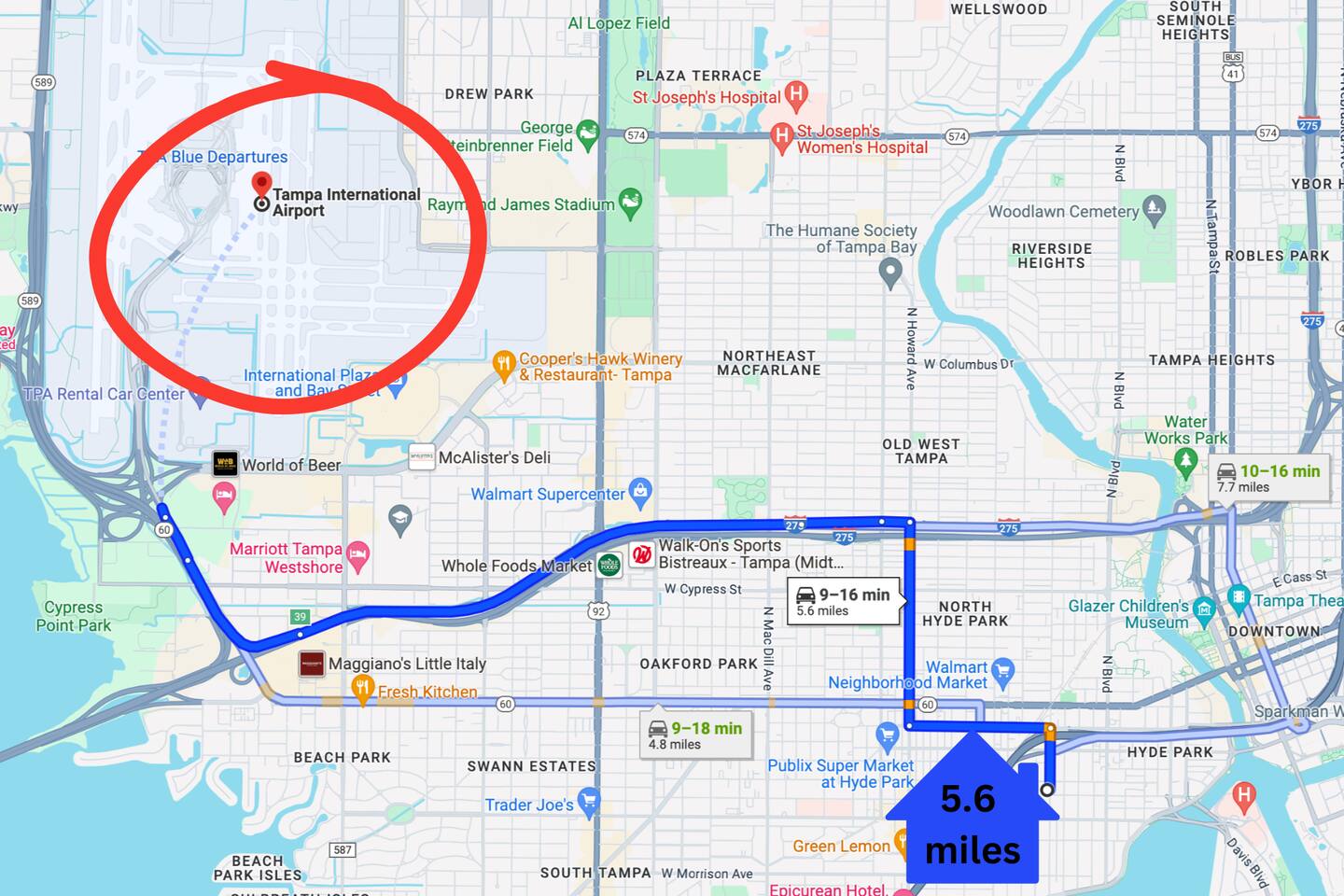Bring along your furry friends (up to two dogs) and make yourselves at home. Please note that a pet fee applies, and we kindly ask that you inform us ahead of time so we can ensure your pets are comfortable during their stay. I can usually offer early check-in for a small convenience fee, as long as the night before isn’t booked. The fee is charged by the hour. Traveling with children? We've got you covered! Let us know in advance, and we'll provide essentials like a pack-and-play, high chair, baby utensils, dishes, and toys to make your little ones feel right at home. Looking to elevate your stay? Schedule an appointment to enjoy our Red Light Therapy and Infrared Sauna. We also offer personalized training sessions and yoga services for an additional hourly fee. Places of interest: -Tampa International Airport (5 miles - 12 minutes) -Hyde Park Village (0.3 mile - 8 min walk) -The University of Tampa (1/2 mile or 10 minute walk) -TGH {Tampa General Hospital} (1 mile or 5 minutes) -Tampa Convention Center (1 mile - 4 minutes) -Water Taxi (Start @ Tampa Convention Center, 1 mile - 4 minutes) -Riverwalk Tampa Florida (1.3 miles - 6 minutes) -Amalie Arena (1.4 miles or 3 minutes) -Tampa Bay History Center (1.6 miles - 4 minutes) -Sparkman Wharf (1.7 miles - 5 minutes) -Downtown Tampa (1.9 miles - 5 minutes) -Armature Works (2.1 miles - 8 minutes) -Florida Aquarium (1.9 miles - 5 minutes) -Ybor City Historic District (4.2 miles - 9 minutes) -Raymond James Stadium (11 min - 4.2 miles) -Zoo Tampa (6.3 miles - 14 minutes) -Adventure Island (13 min 4.4 miles) -Hard Rock Hotel and Casino (8.6 miles - 11 minutes) -Busch Gardens (10.9 miles - 19 minutes) -Downtown St.Pete (21.6 miles - 25 minutes) -St. Pete Beach (25.8 miles - 36 minutes) -Clearwater Beach (39 min drive - 24.7 miles) Note: All travel times are subject to traffic.