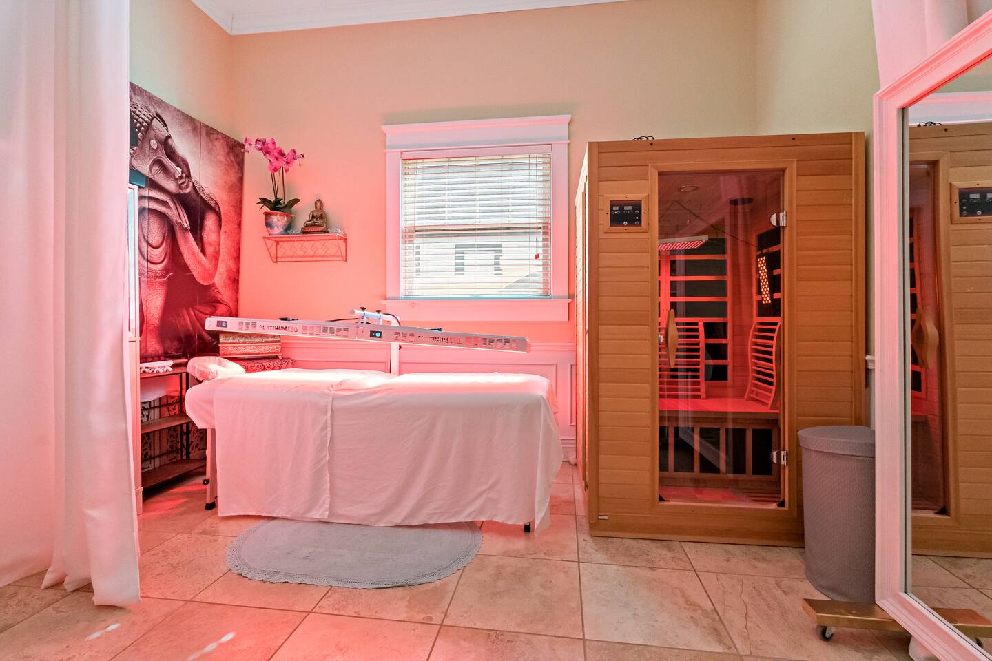 Guests have access to one private parking spot in the back driveway and plenty of free street parking. Guests staying on the property can use the gym. In addition, there is the option to use the red light therapy and infrared sauna.