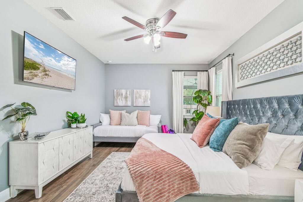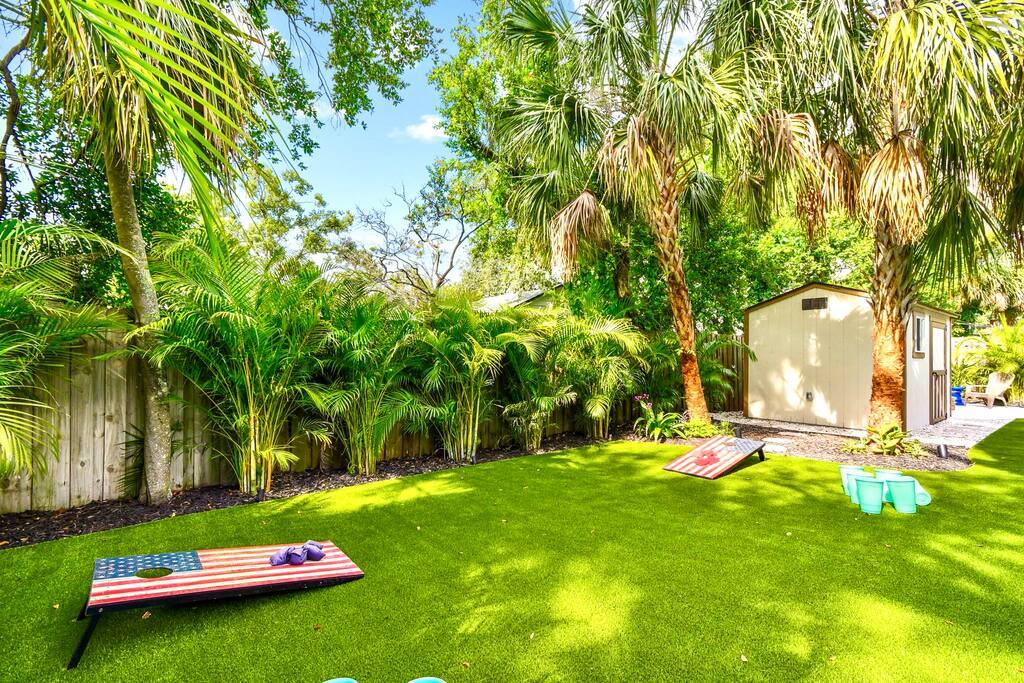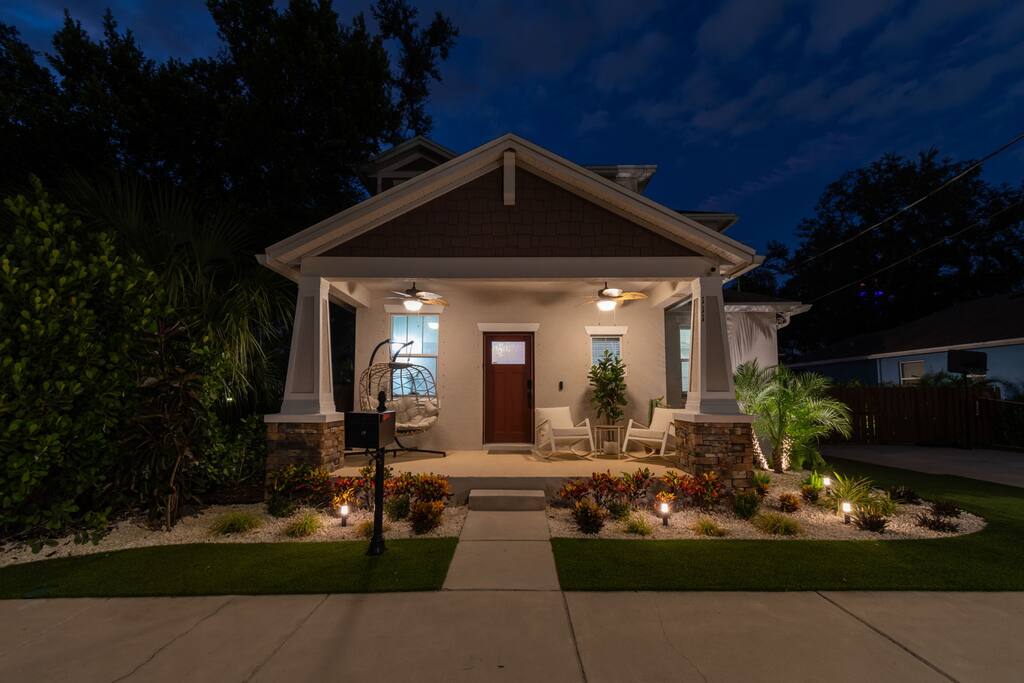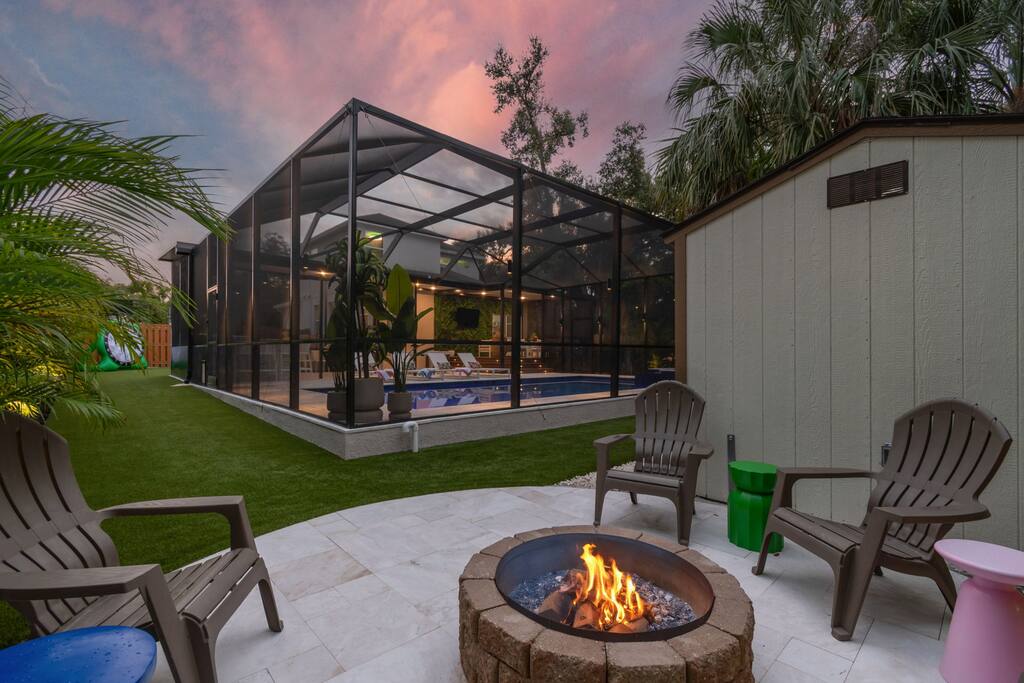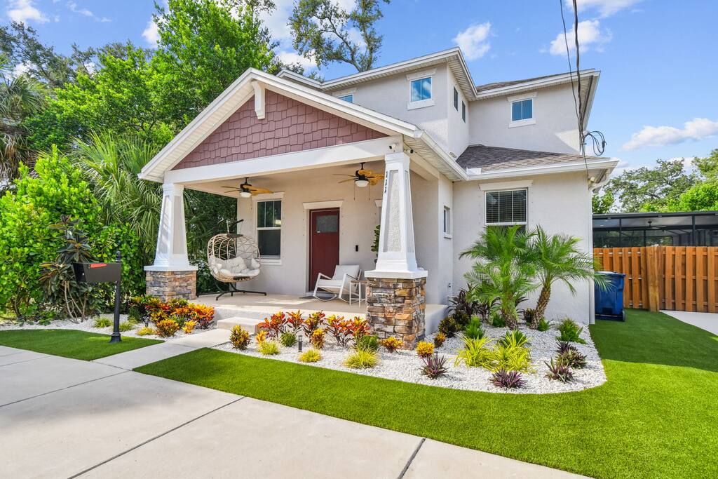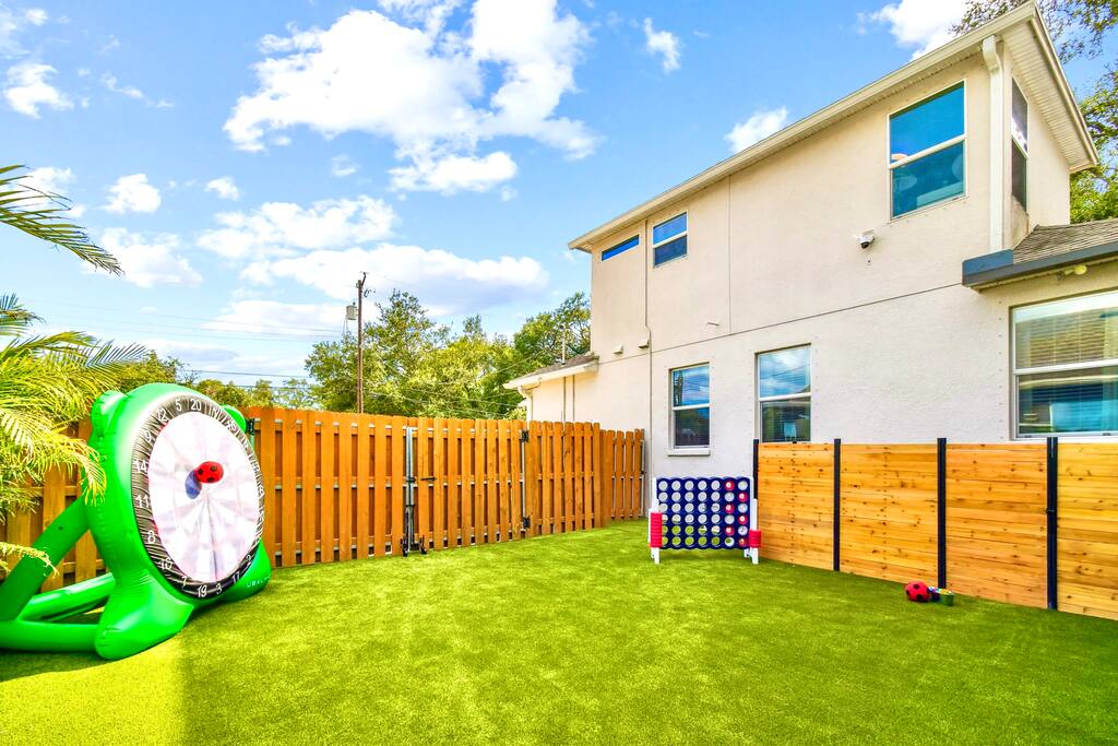 Stunning Remodeled Retreat with Pool, Spa & Endless Entertainment Welcome to your perfect Tampa getaway! This professionally remodeled 3-bedroom, 2.5-bath home is designed for families and friends to relax, connect, and create lasting memories. With 8 beds and space to sleep up to 10 guests comfortably, every detail has been thoughtfully prepared to make your stay seamless. Step inside to find a fully loaded home stocked with everything you need, from brand-new furnishings to a variety of indoor and outdoor entertainment. ✨ Sleeping Arrangements: ⭑ Master Bedroom (2 beds): ⭑ ✔ King-sized premium memory foam bed for ultimate comfort ✔ Single premium memory foam bed ✔65" Smart TV with streaming capabilities ✔ Blackout curtains for a restful sleep ✔Side tables offers USB & outlets for easy charging your smart devices ✔ En-suite bathroom with dual vanity, walk-in shower, lux soaking tub, and walk-in closet with desk ⭑ Upstairs Loft (1 bed): ⭑ ✔ Queen pullout sofa bed with luxurious linens ✔ 65" Smart TV and blackout curtains ✔ Ceiling fan with dimming lights ✔ Fun cloud lighting feature to feel super relaxed ⭑ Second Bedroom(2 beds): ⭑ ✔ Two double memory foam beds with luxurious linens ✔ 40" Smart TV and blackout curtains ✔ End table and lamp offers USB & USBC outlets for easy charging your devices ✔ Ample closet space for all your belongings ⭑ Third Bedroom (3 beds): ⭑ ✔ Cozy full-size bunk bed with twin over top and twin pullout bed—perfect for kids or extra guests ✔ 40" Smart TV and dedicated workspace/vanity ✔ Plenty of closet space 🏡 Entertainment & Amenities: ⭑ Living Room: ⭑ ✔ Open-concept layout with stylish, comfortable furniture ✔ 75" Smart TV and sound system with Bluetooth and AUX ✔ Bright natural light with plenty of space for relaxation ⭑ Kitchen and Dining Area: ⭑ ✔ Fully equipped with stainless steel appliances ✔ Granite countertops and a coffee & wine bar ✔ Drip coffee maker, French press, Nespresso, and pour-over coffee options ✔ Essentials like pots, pans, dishes, silverware, and more ✔ Dining table perfect for family meals, game nights, or work-from-home setups ⭑ 2.5 Bathrooms: ⭑ ✔ 2 Full bathrooms (one in the master suite) with luxurious amenities (second upstairs) ✔ Bathtub, rain shower, and dual vanity in master bath ✔ 1 half baths conveniently located near common areas ⭑ Outdoor Space: ⭑ ✔ Deck right off the kitchen with loads of seating and ✔ Large patio off the deck with pool/ping-pong table that converts to dining table ✔ Large patio with remote controlled fans, two TVs, outdoor bar, and seating for gathering ✔ Sparkerling Heated Pool & Spa ✔ Fire pit, mini golf course, and turf area for even more outdoor games ✔ indoor and outdoor board games for all ages Everything in this home is brand new and professionally designed to ensure maximum comfort and style. ⭑ Additional Amenities: ⭑ ✔ High-speed WiFi and Ethernet connection ✔ Exercise equipment, books, and board games for family fun ✔ Pack 'n play, high chair, and baby safety gates available upon request ✔ Fireplace, air conditioning, and ceiling fans ⭑ Safety and Security: ⭑ ✔ Exterior security cameras (Ring camera facing driveway) ✔ Smoke alarm, fire extinguisher, and first aid kit ⭑ Entertainment and Connectivity: ⭑ ✔ TVs in every bedroom and living room ✔ Sound system with Bluetooth and AUX compatibility ✔ Books and board games for cozy nights in ⭑ Heating and Cooling: ⭑ ✔ Air conditioning and heating for year-round comfort ✔ Ceiling fans in key areas ⭑ Parking: ⭑ ✔ Free parking on premises ✔ Free street parking (two cars only) ⭑ Services: ⭑ ✔ Pets allowed ✔ Long-term stays welcome (28 days or more) ✔ Self check-in with a smart lock for seamless arrival Your stay at this Seminole Heights Tampa home promises luxurious comfort, unmatched convenience, and a memorable experience. Book now and elevate your Tampa adventure in style! ⭑ Conclusion: ⭑ Whether you’re exploring the best of Tampa, lounging by the pool, or enjoying a BBQ in the outdoor space, this is your ideal home base. Reserve your dates now and make lasting memories!