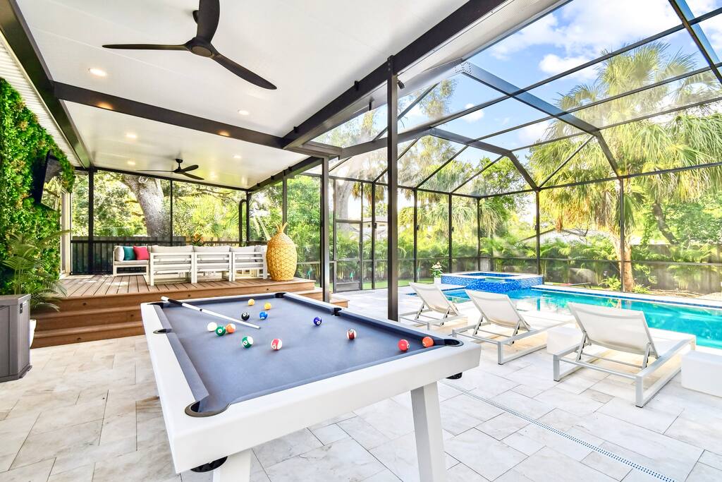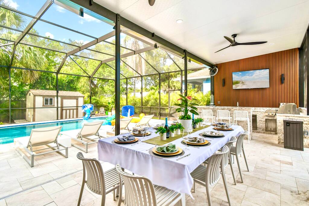 Bring the crew to this newly remodeled 3BR/2.5BA home that sleeps 10 across 8 comfy beds! With a pool & spa, pool table, ping pong, poker, mini golf, fire pit, and loads of games, there’s something for everyone. Enjoy the huge patio with 2 TVs & an outdoor bar, relax in brand-new stylish interiors, and spread out with space for family & friends. Just minutes from all the best Tampa has to offer!